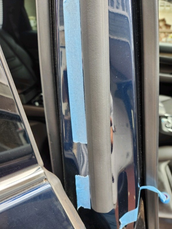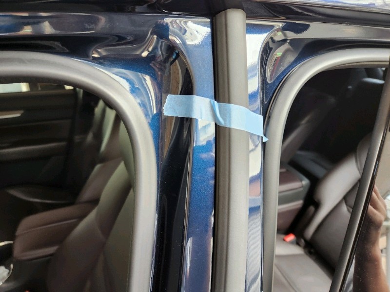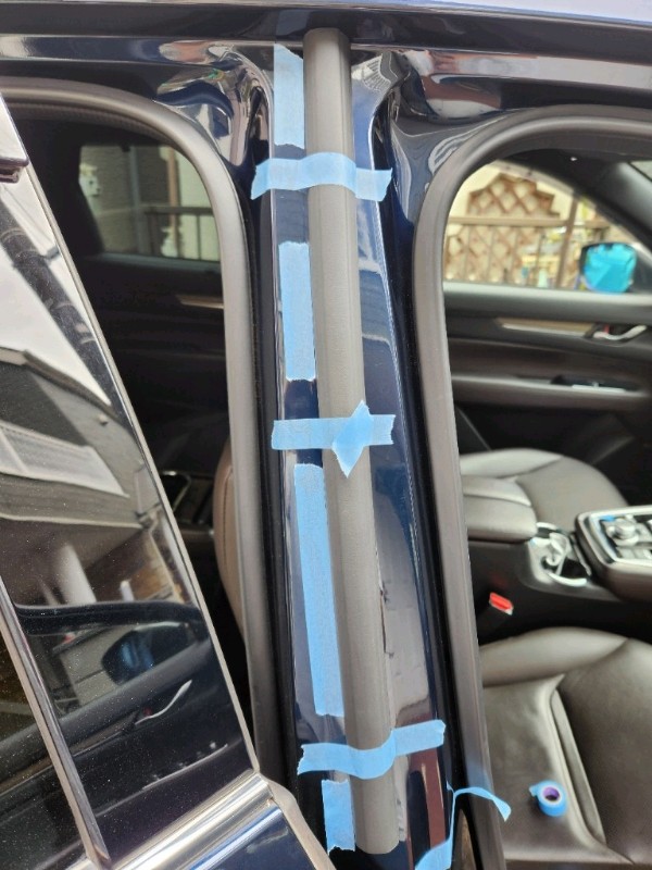 CX-8にはドアにパッキンのようなものがついているので、それが引っ張られないように見て取付位置を確認。